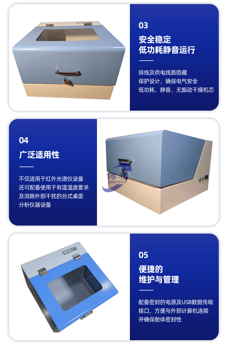 NH-S智能電子防潮箱電子防潮箱,專為賽默飛 IS50 紅外光譜儀量身定制,以領先的防潮技術,為精密儀器筑牢安全防線。搭載高性能電子除濕機芯,結合微電腦濕度控制系統,具備節能低耗、靜謐無噪、濕度直觀顯示等顯著優勢。作為專為傅立葉變換紅外光譜儀量身定制的配套附件,其精密的防塵防潮設計,可有效提升設備核心部件的使用壽命,為儀器的穩定運行與精準檢測提供可靠保障。