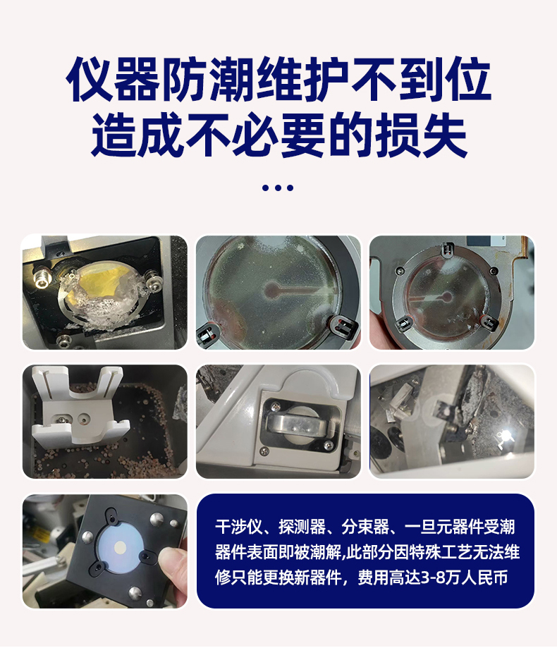 賽默飛IS5紅外專用電子防潮箱專用電子除濕防潮箱是專門為傅里葉紅外光譜儀設計的除濕裝置,可以有效地避免濕度對干涉儀和探測器造成的損壞。該產品符合PC/JEDECJ-STD-033B作業標準,即濕度不超過50RH%。它還可以實時監測濕度,并在濕度超過設定值時自動啟動除濕功能,無需額外耗材,低能耗。該產品銷售遍及全國,遠銷海外,為傅里葉紅外光譜儀用戶提供安全保障。
