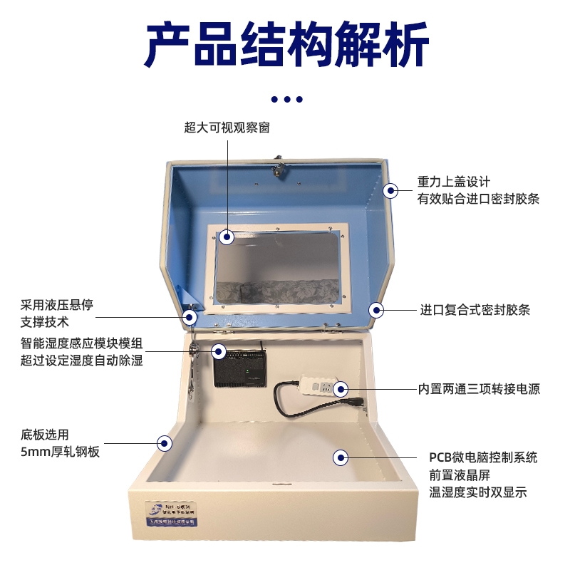 3、防潮箱門玻璃區域選用高強度有機玻璃。超大觀察窗方便用戶直接觀察儀器狀態;